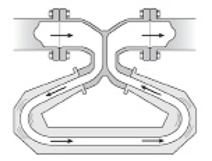 Density: Density measurement is the only methodology that uses a mechanical solution to measure water cut. Usually a coriolis flowmeter performs the measurement. Fluid enters flow tubes that are mechanically driven to vibrate at a certain frequency. Figure 3 provides a typical arrangement. As the fluid’s density changes, the frequency at which the tubes oscillate also changes. The water cut can be determined from those changes.